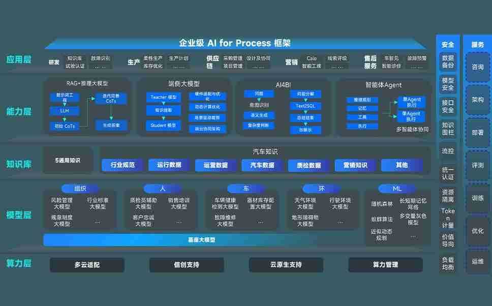 端到端的一站式AI工作空间深度融合了从企业战略规划到日常经营的全流程业务板块,,定向解决车企内部领域多、、、部门多、、、链条长、、、、场景碎片化等难题,,,,支持车企快速构建以AI为核心的生产力写作体系,,,实现任务执行与AI能力的无缝集成与交互